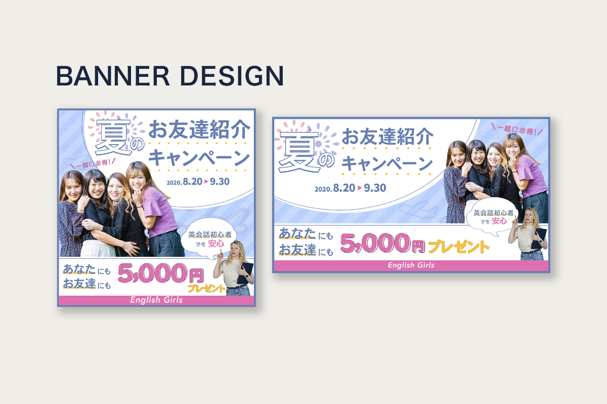 架空バナー制作(英会話教室の友達紹介キャンペーン)