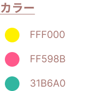 デザインの工夫|お得感を伝えたかったので柔らかい文字のモッチーポップを使用。コーポレートカラーがピンクFF598Bだった為、文字色に使用。文字が目立つようにメインカラーを黄色FFF000にしました。