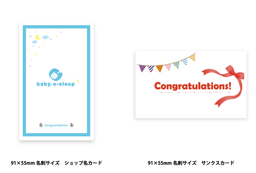 赤ちゃん用商品のため、可愛らしいカードデザインと、ご出産おめでとうの気持ちを込めて、カードを制作しました。