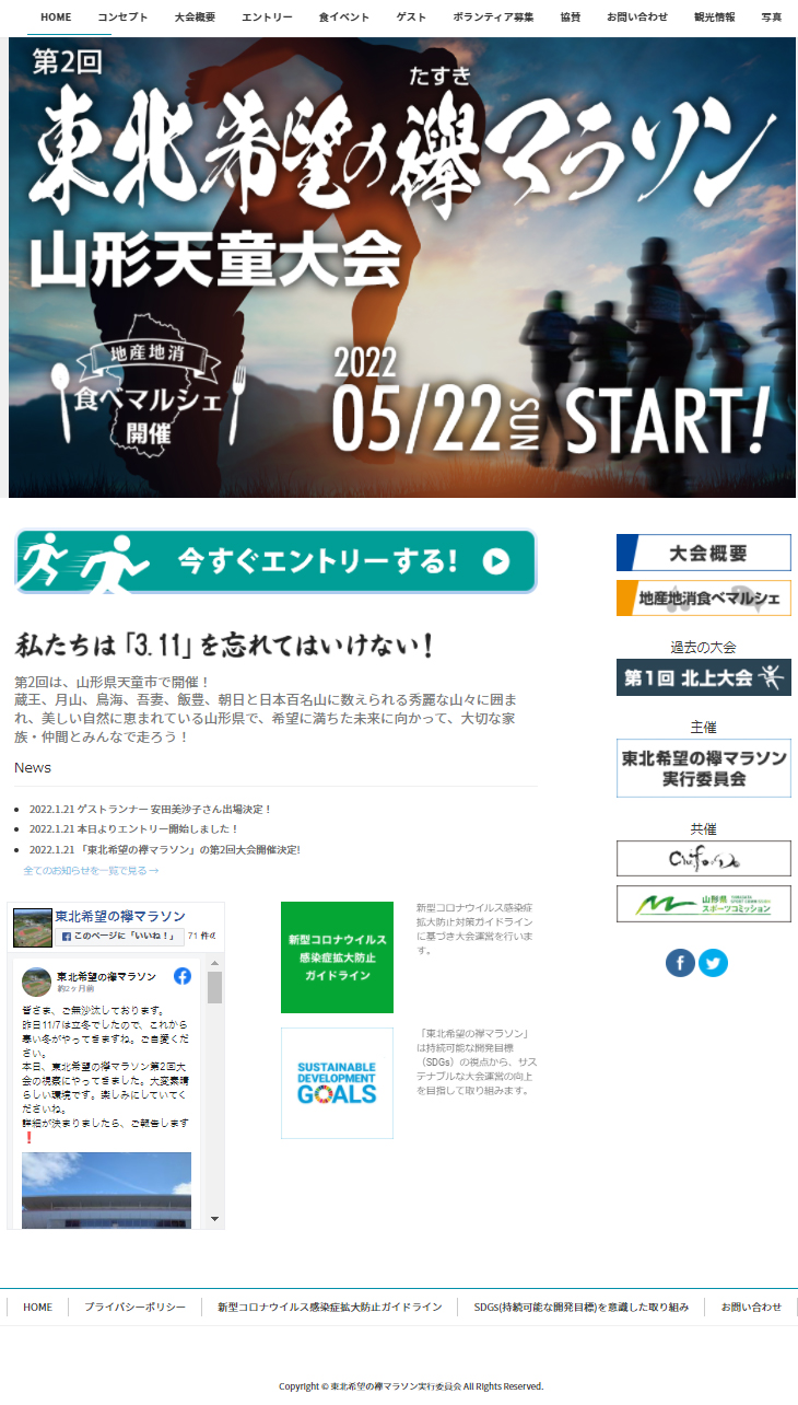 Web デザイン Yuka Takamizawa デザイナー・他 OVERVIEW Word press + photoshop 東北希望の襷マラソン第2回 山形天童大会サイト設計、メインビジュアル、更新を担当中 2021.12~ WEBSITE