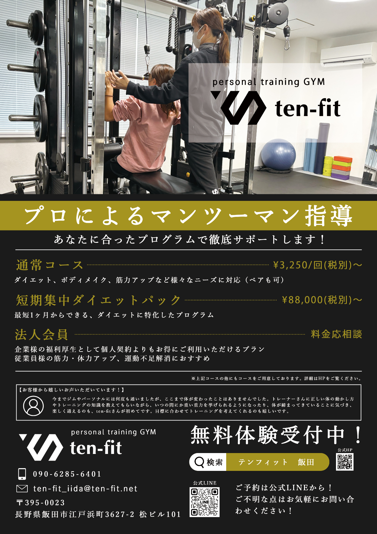 パーソナルジムten-fit様より、配布用フライヤーの製作をご依頼いただきました。 (製作時間:約1週間)