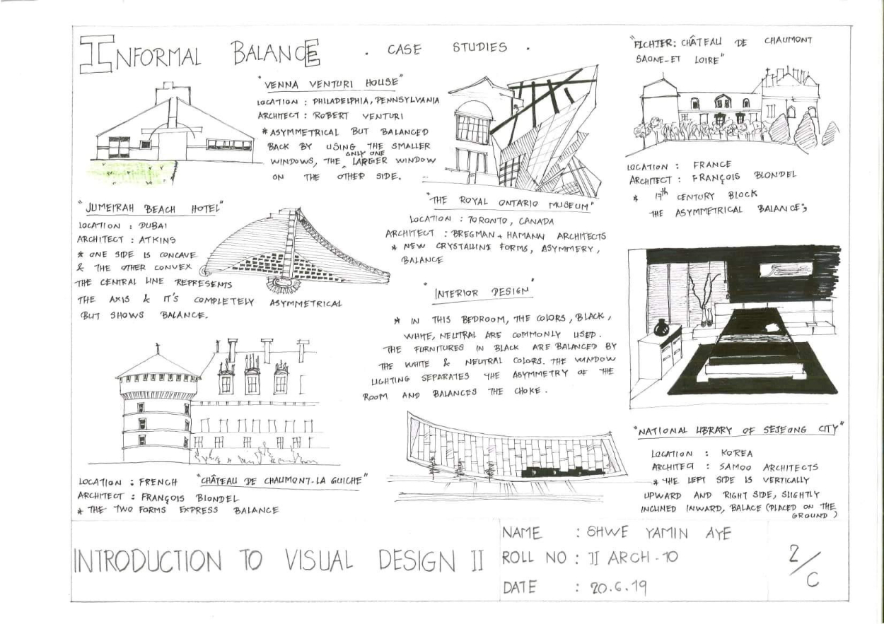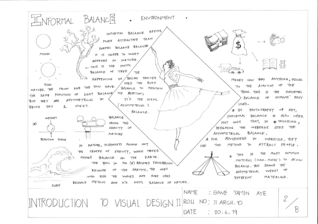 SCHOOL PROJECT Shwe Yamin Aye 学生 OVERVIEW これは大学で「INFORMAL BALANCE」についてプレゼンテーションをした時のプロジェクトです。A3サイズの紙に鉛筆でスケッチをし、インターネットで情報を調べて、自分が発表したい内容をまとめました。