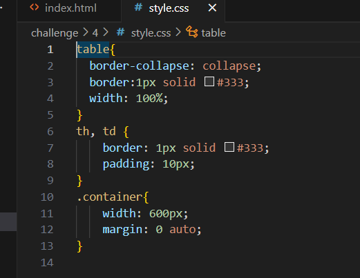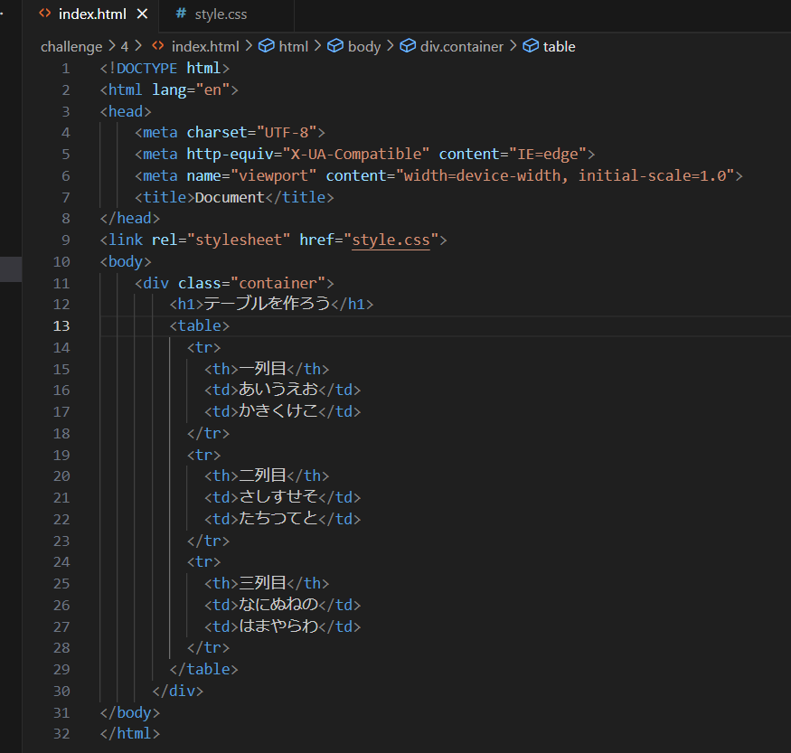 このHTMLファイルでは、<table>要素を使用してテーブルを作成し、<tr>要素で行を定義し、<th>要素でヘッダーセルを、<td>要素でデータセルを定義しています。CSSスタイルを使用して、テーブルのスタイルをカスタマイズしています。