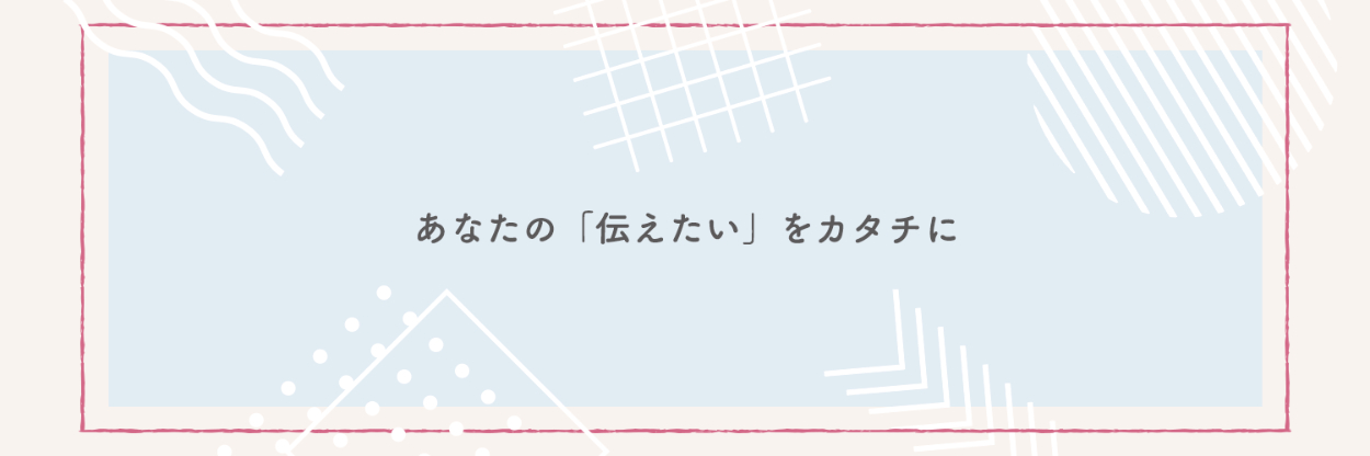 ・「カタチに」というテキストの元、丸、三角、四角などのあしらいを使用しました。