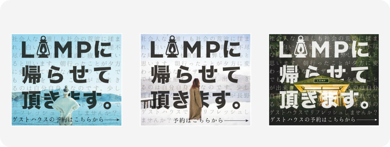 デジタルハリウッドSTUDIO by LIG の課題として作成 ゲストハウスLAMPの集客を目的としたバナー広告のデザインをおこなった