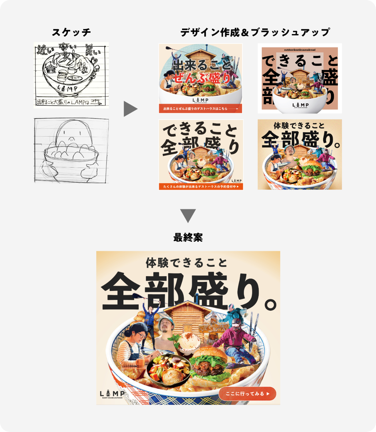 - LAMPでできることが多いため牛丼→大盛り→全部盛りとアイデアを展開させた