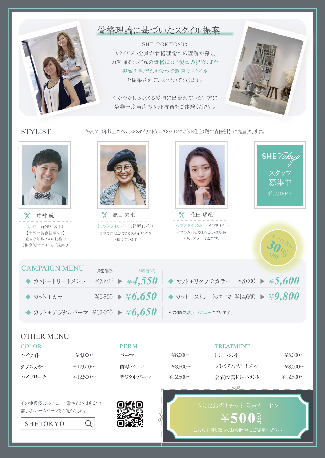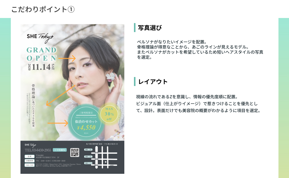 新規開店の告知及び顧客獲得を目的としたフライヤー制作【架空案件】