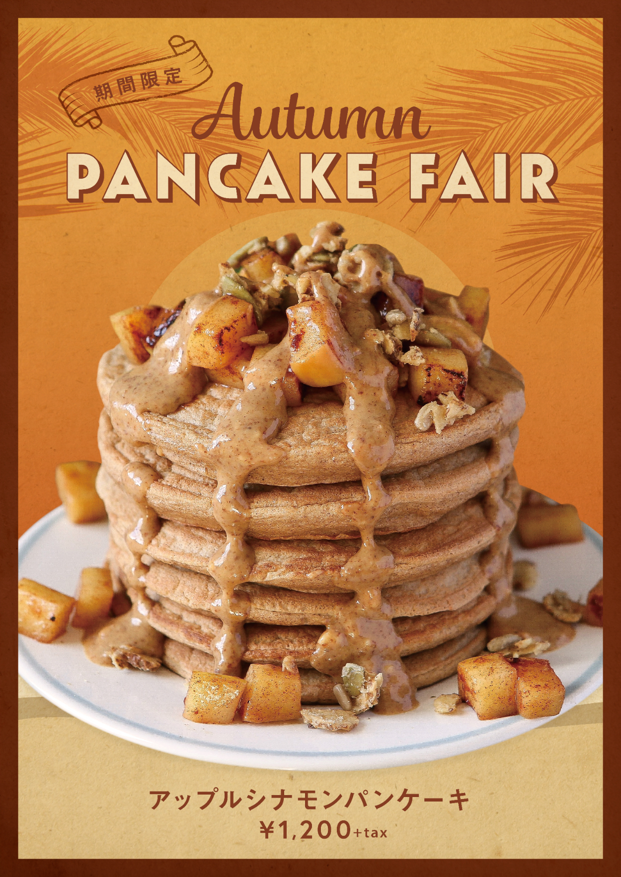 秋限定商品として販売される「アップルシナモンパンケーキ」の店内ポスター