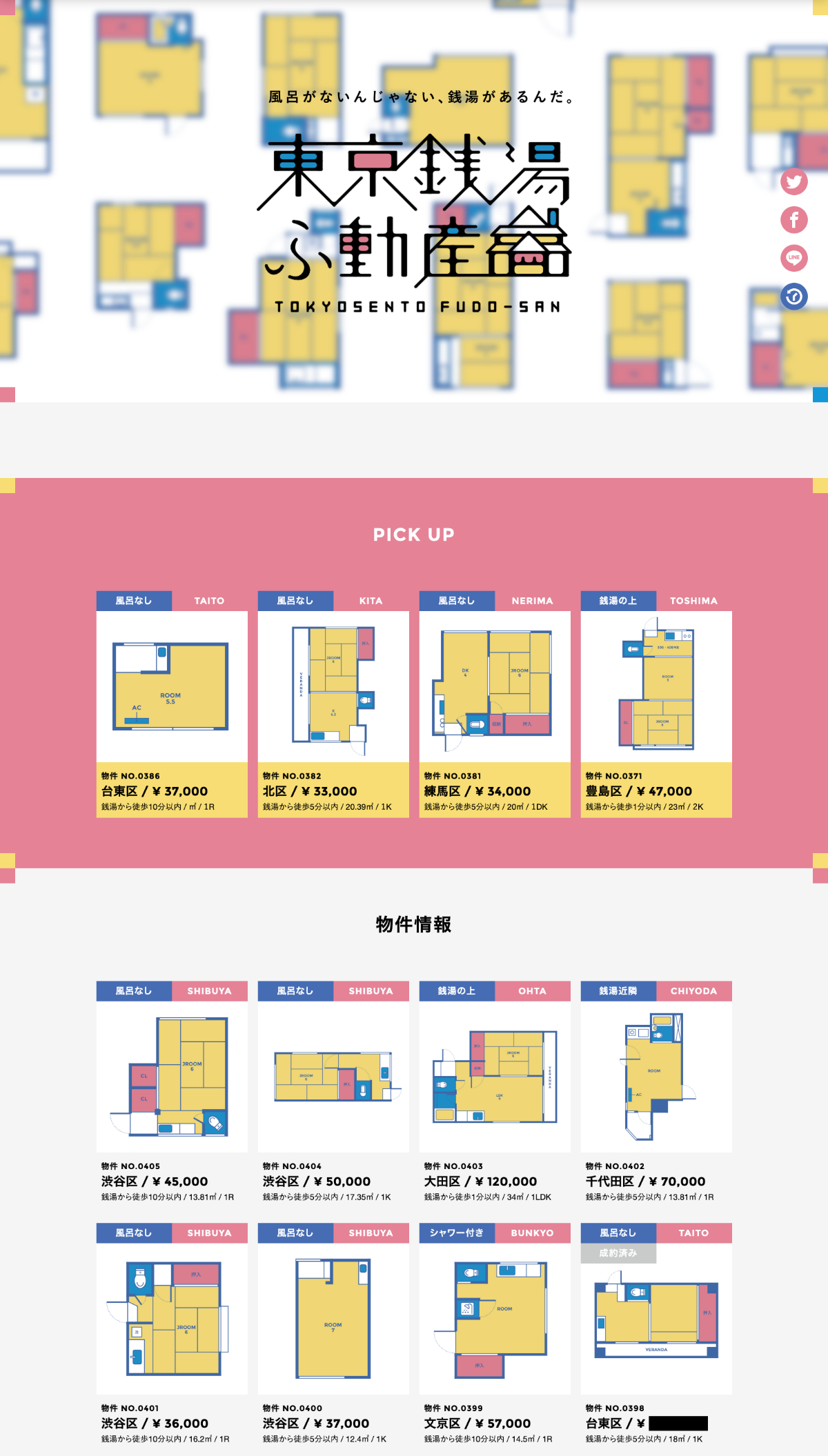 東京銭湯の新規事業である、東京銭湯ふ不動産。風呂なし物件を紹介するWebサイト。 斜陽傾向のある、「風呂なし物件」 × 「銭湯」に光を当てるべく「銭湯のある暮らし」を提唱し、物件サイトの運用を中心に魅力を様々な角度から発信しています。