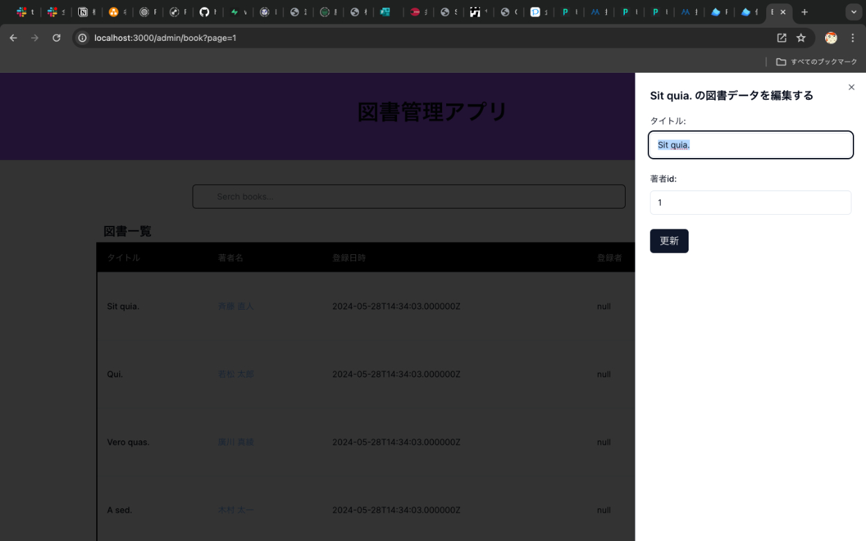 フロントエンド開発はTypeScriptを使用しています。自作した図書管理APIを利用したWebアプリケーションを開発しようと思いTypeScript、tailwind cssを使用したNext.jsでの開発を行いました。uiライブラリにはshadcnを使用し、デザイン制作としてfigmaを使いました。