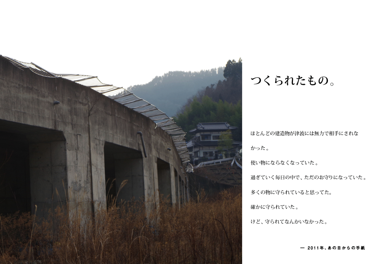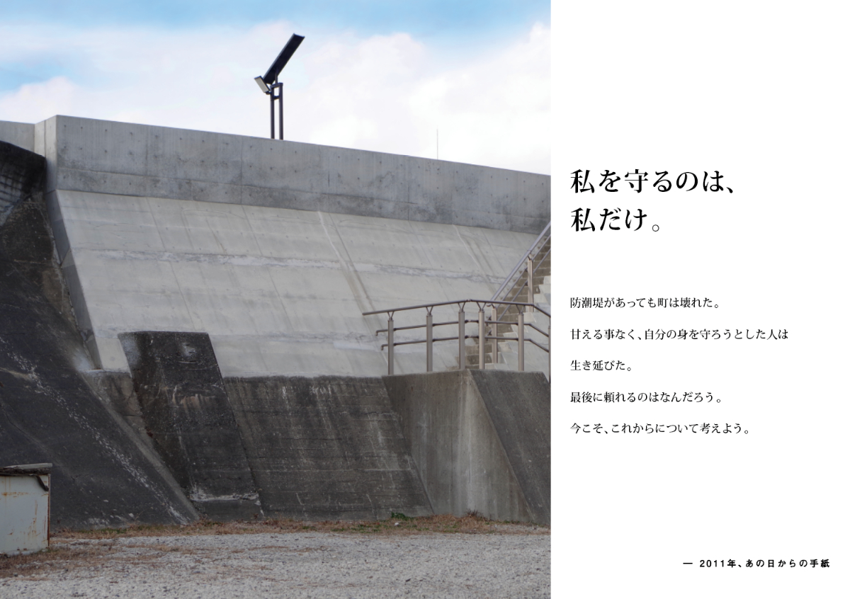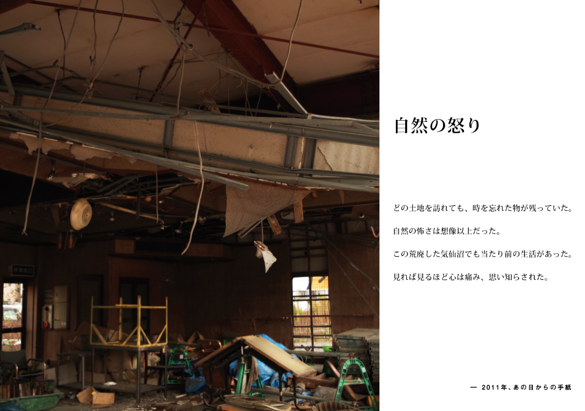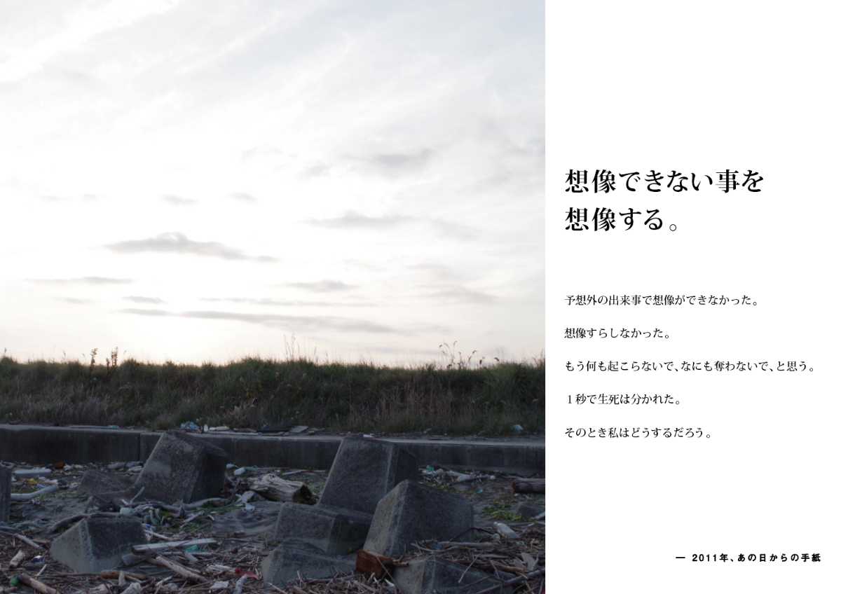 地震から5年後の現地に赴き、実際に自分の目でみて、今思うことを広告という形で表現しました。