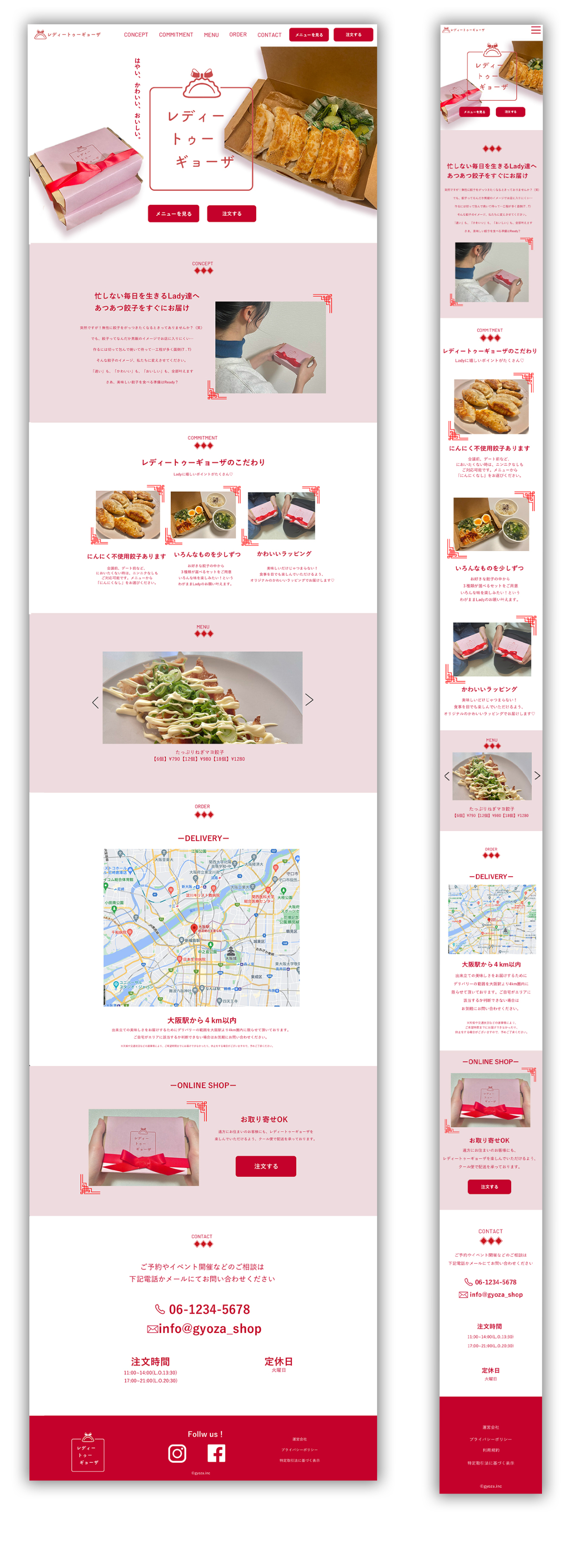 - 餃子の油っぽさを感じさせないよう背景を白にし、清潔感を出しました。また、中華らしい食欲を増進させる赤と組み合わせることでトンマナに合わせた新しく洗練された印象になるようにしました。