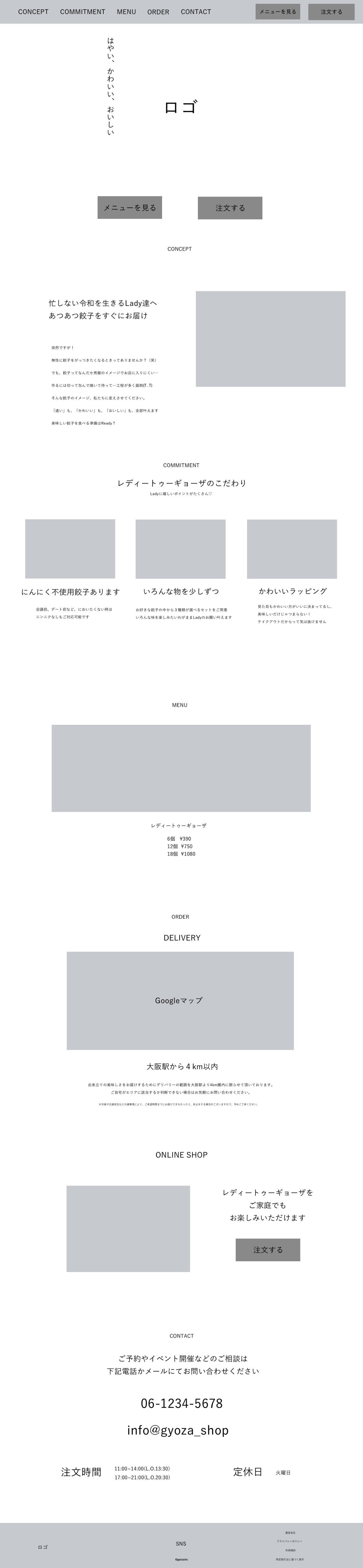 - ロゴは四角の上にリボンのついた餃子を上にのせることで、クライアントが売り出したいと考えているこだわったプレゼントのような餃子のラッピングを表現しています。