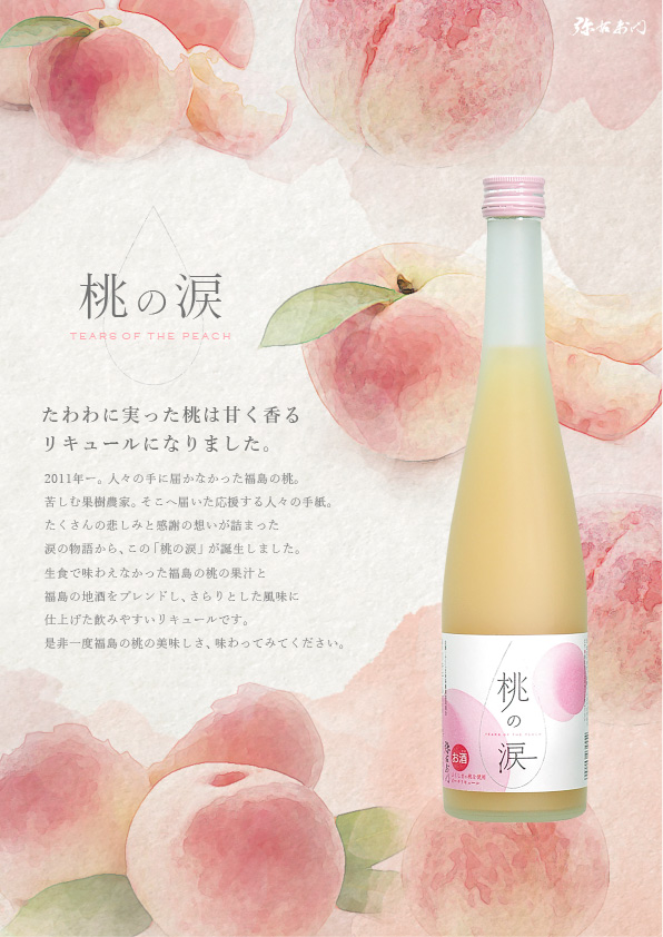 日本酒の『弥右衛門』でお馴染みの福島県喜多方にある蔵元【大和川酒造】が造った桃リキュール「桃の涙」のフライヤー