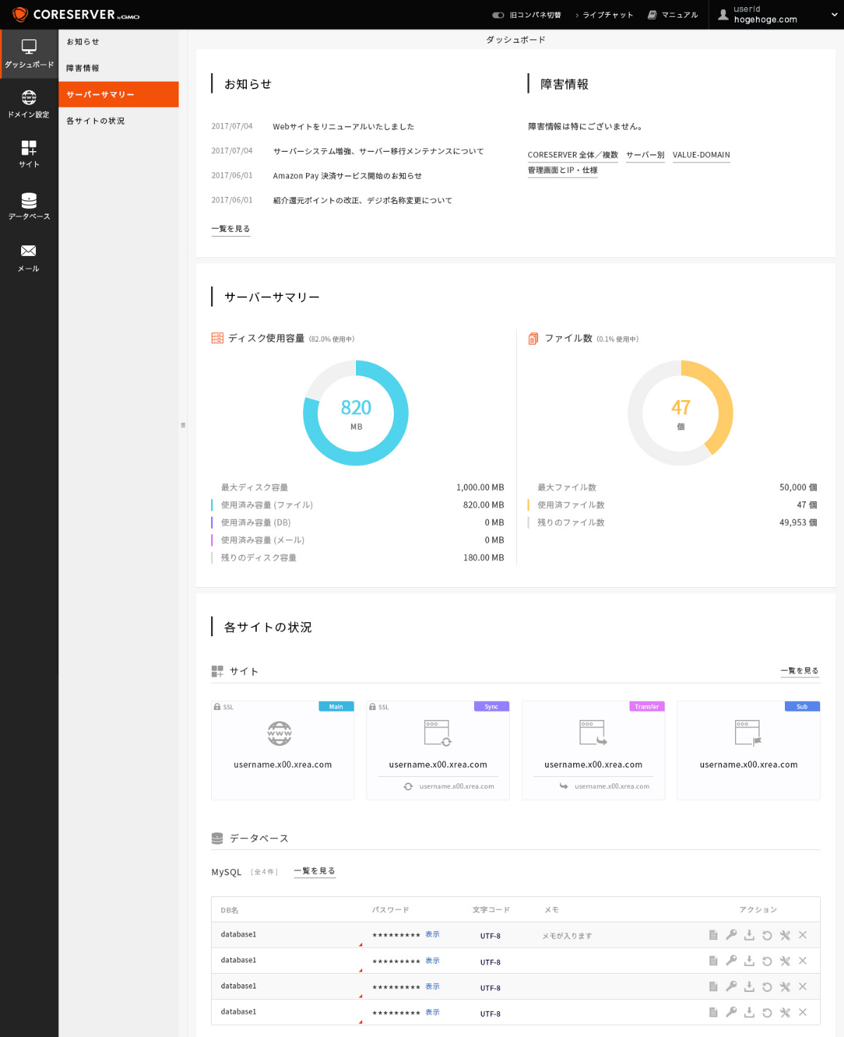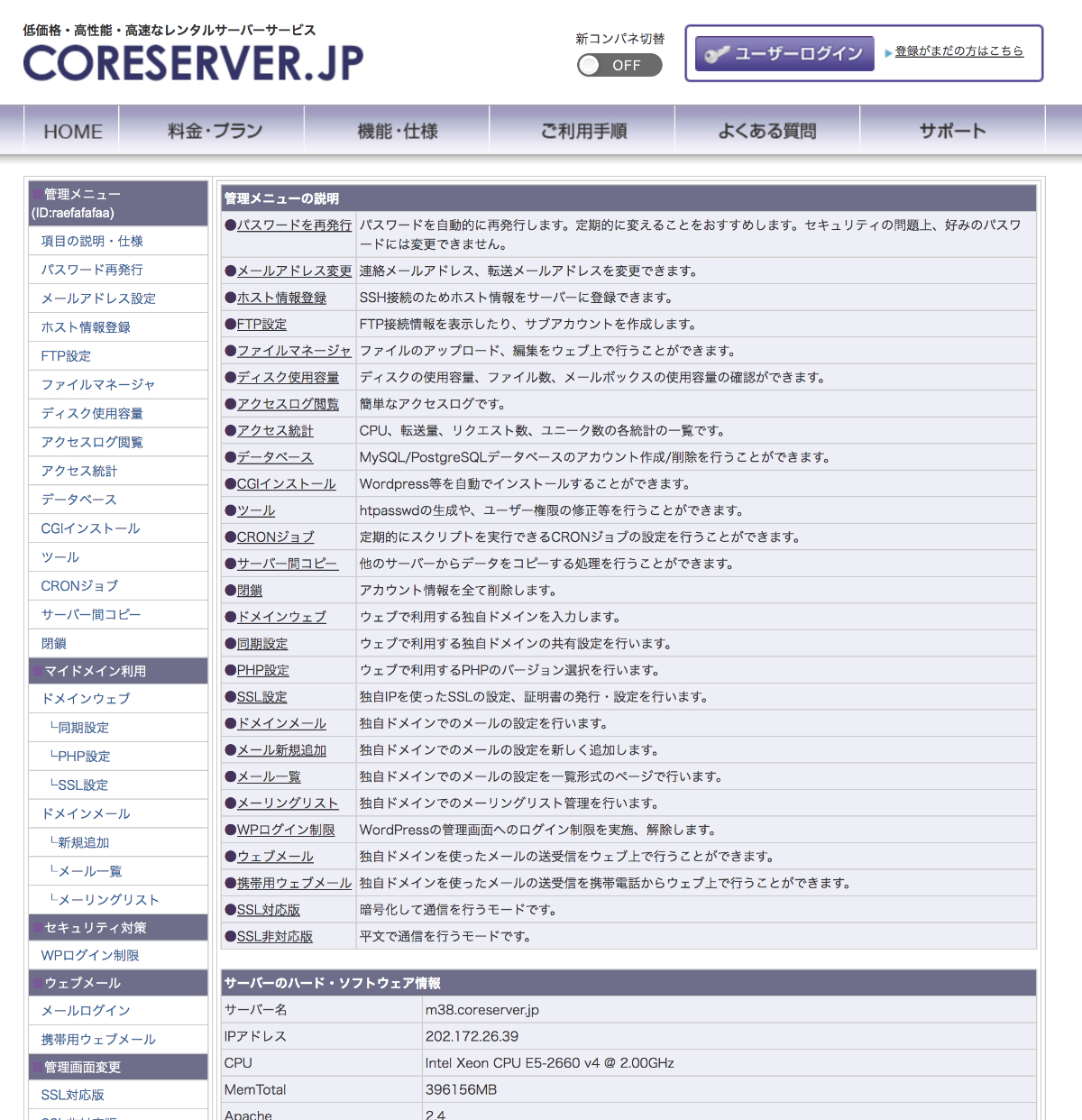 レンタルサーバー「コアサーバー」の、コントロールパネルのデザインをすべて担当。