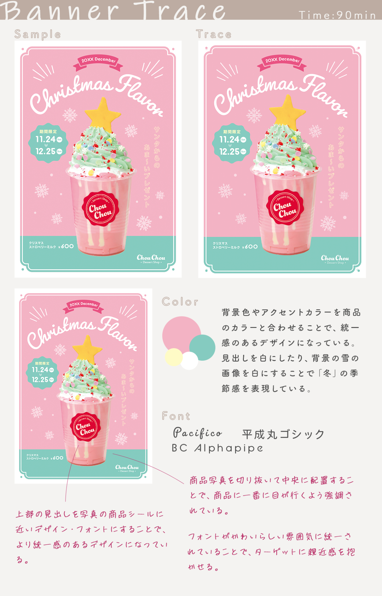 【バナートレース】デザインのドリル「#23スイーツ店のチラシ」