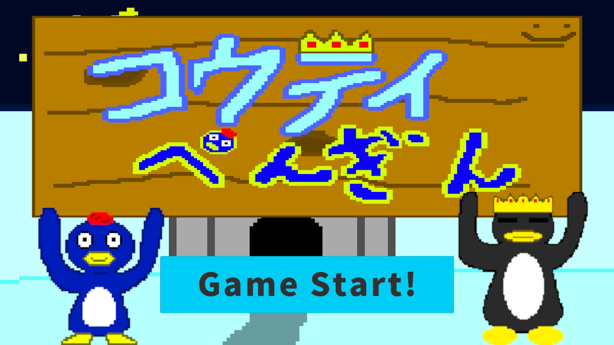 「コウテイぺんぎん」 長屋 晴太|Nagaya Haruta ゲームプログラマ志望 専門学生 OVERVIEW #チーム制作 #Unity #ゲームジャム作品 YEAR 2025 ジャンル:2D, Actionプレイ人数:1人制作期間:2025/07 ~ 2025/07制作人数:4人 WEBSITE