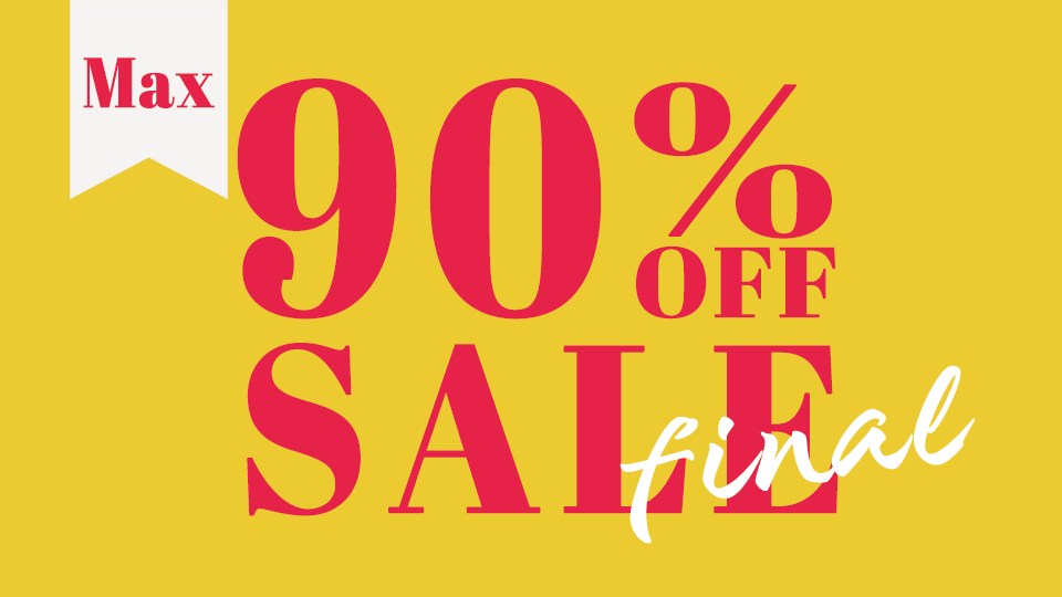 「90%OFF」「SALE」のフォントを大きくし、視認性を意識した情報設計にし、「final」の文字のみフォントを変えて、少しオシャレ感もプラスしました。
