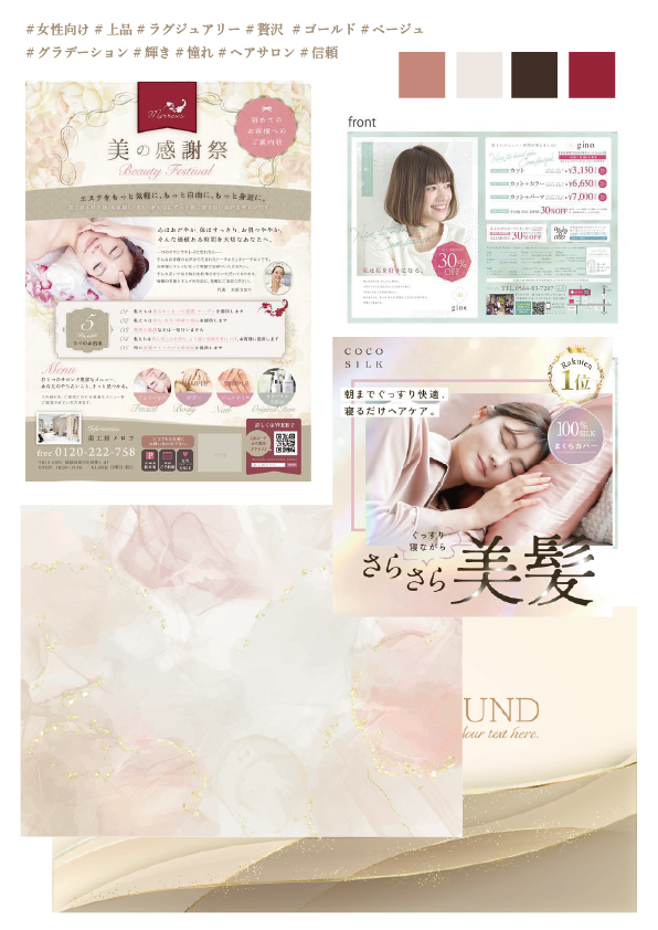 上品なデザインに仕上げたため、まとまりのあるデザインを実現するために揃えるところを細かい部分まで調整しました。またシンプルなデザインになってしまうため、単調にならないよう「30%OFF」の最も目立つ部分にグラデーションと影を入れて立体感を出したことがポイントです。