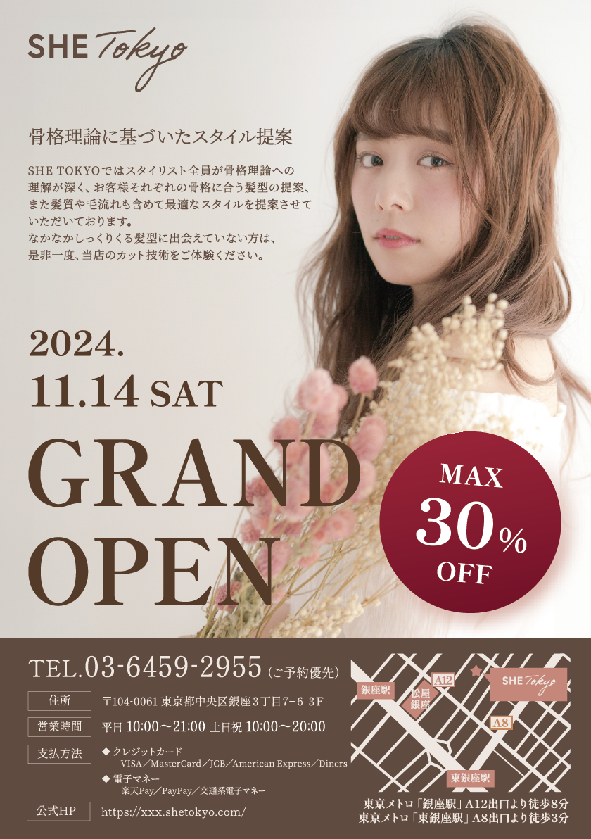 銀座に拠点を構える、骨格理論に基づいたスタイル提案が売りの美容室。オーダーしていただいた髪型もそのまま再現するのではなく、一人ひとりの骨格や髪質に合わせて最大限似合うようにカスタマイズし仕上げることを得意としている。スタイリストは皆モデル御用達の有名店で腕を磨いた実力派。