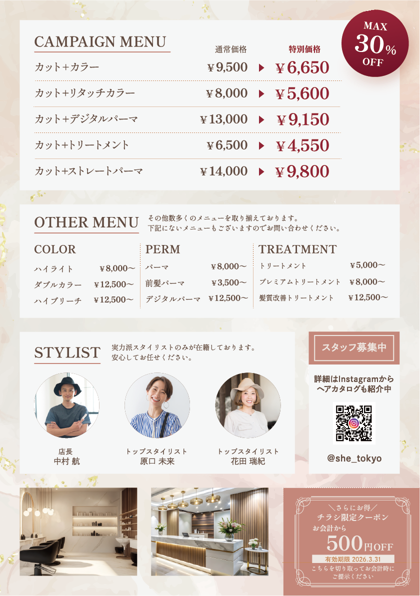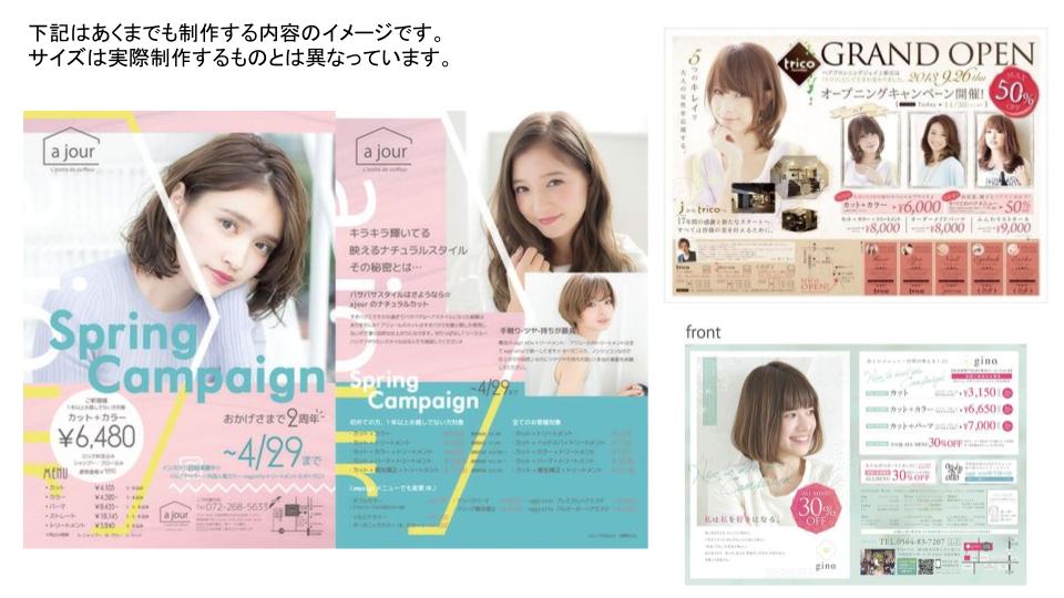 新しくオープンする美容院の特別キャンペーンを紹介するポスティング用のフライヤーの制作