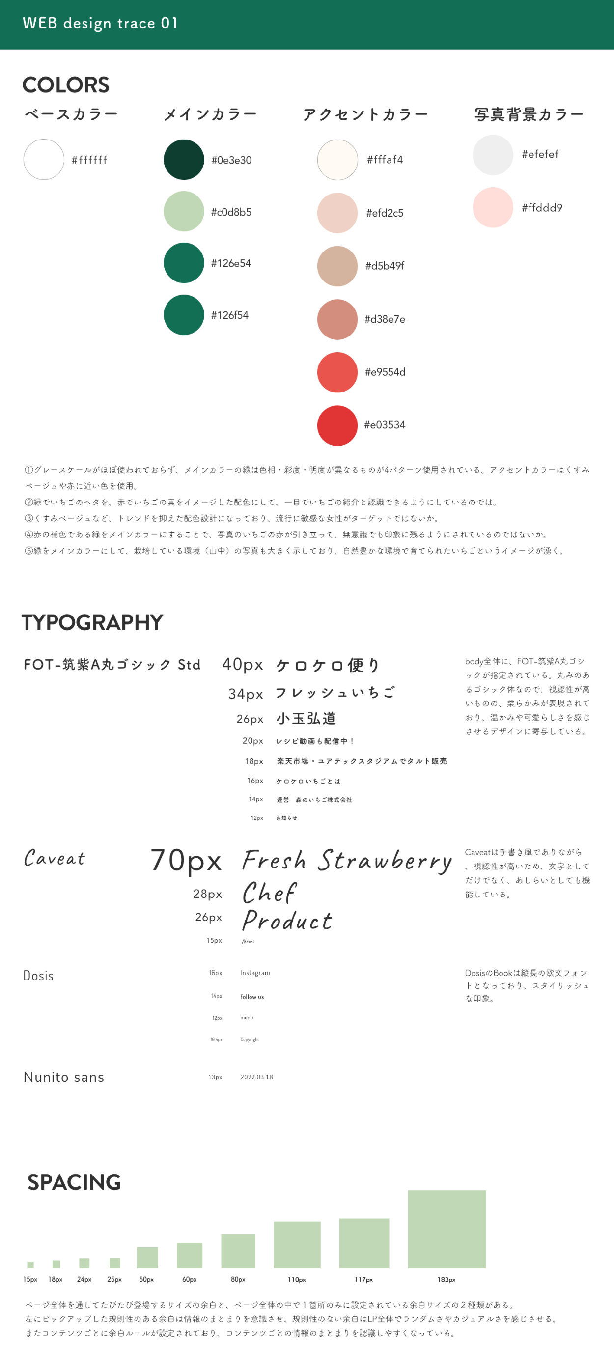 ■スタイルガイド(サイトで使用されている配色・フォント・余白を分析し、まとめました。)