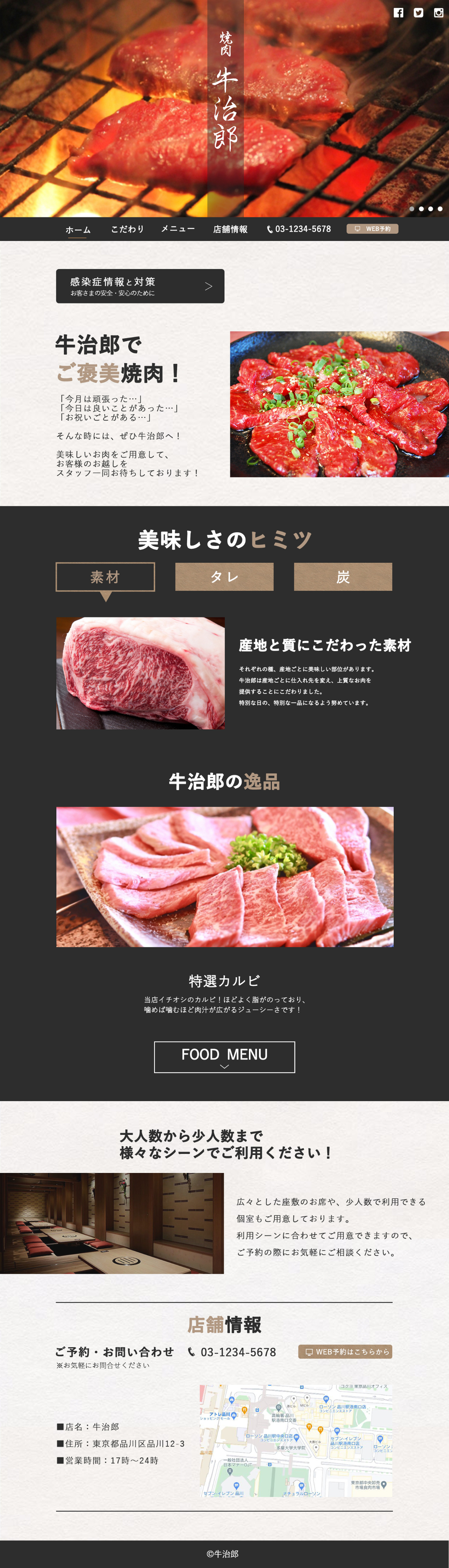 サイト制作の目的は、「お祝いごとや頑張ったご褒美として利用したいと思われ、来店予約をすること」です。また、お店のウリである「産地にこだわったお肉」をPRできるよう、お肉の写真を多く使ったデザインにしました。