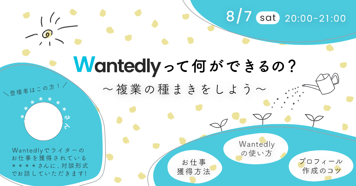 - トンマナの指定はなかったため、配色はベースを白、Wantedlyのロゴカラーである水色をメイン、メインカラーの補色かつ複業にワクワク感を持てるよう、アクセントで黄色を使用