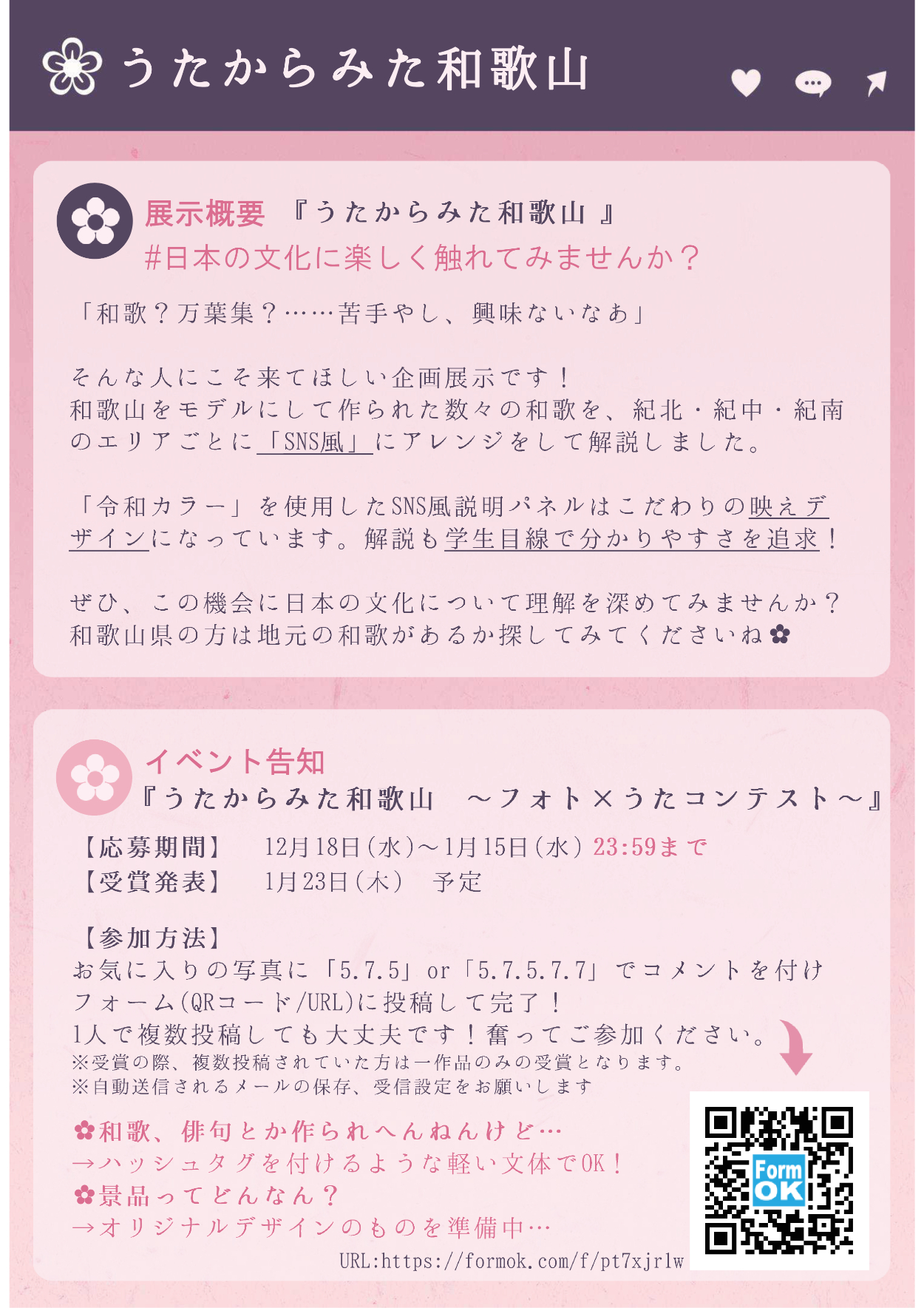 学芸員資格取得のための講義で実施した「和歌」をテーマとした企画展示のデザイン物を担当しました。