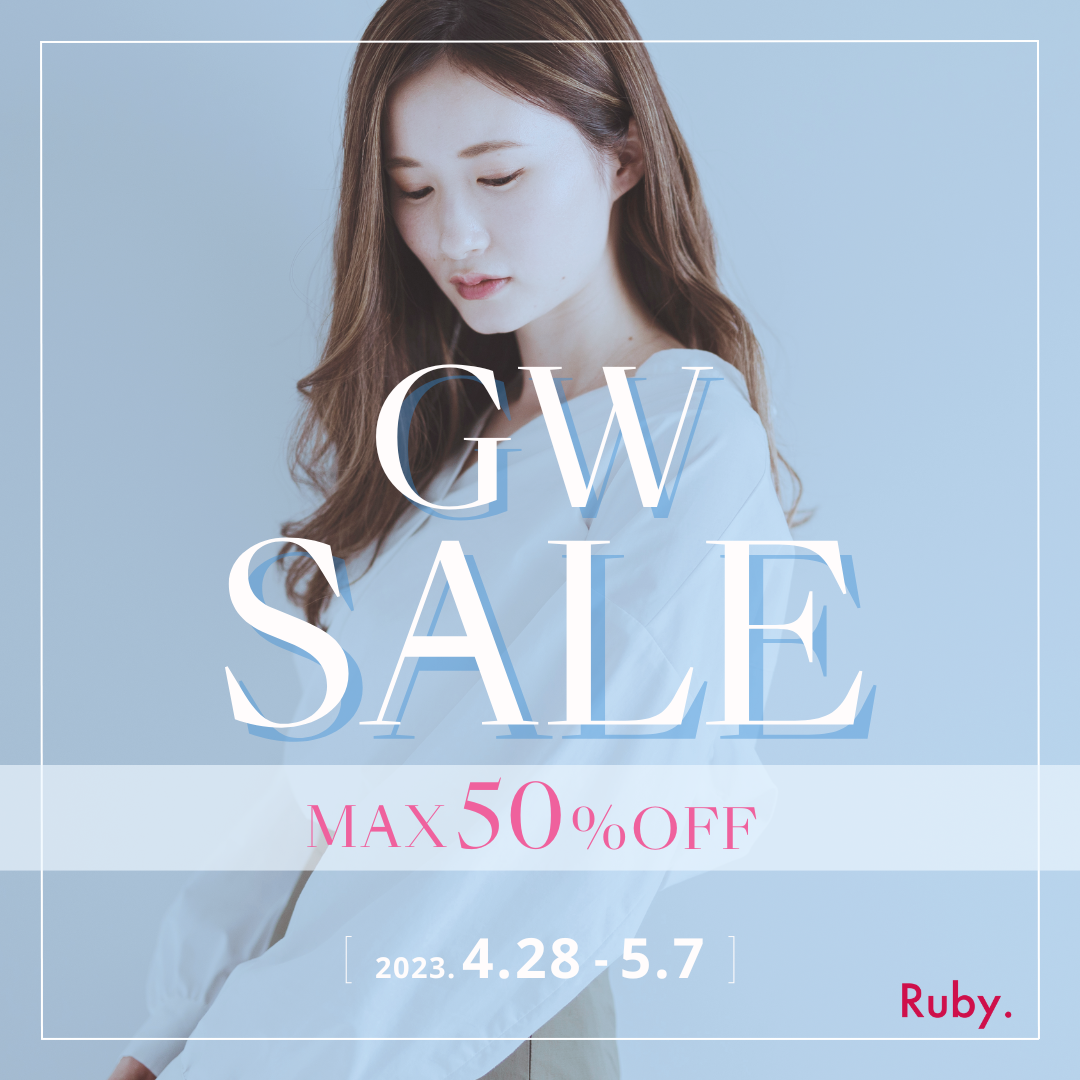 背景と「GW SALE」の文字の影の色をブルーにすることで初夏を感じる爽やかな色味を表現しました。色味・文字ともに優しい、女性らしいイメージのものを使用し、全体的にフェミニンさを感じられるデザインにしました。