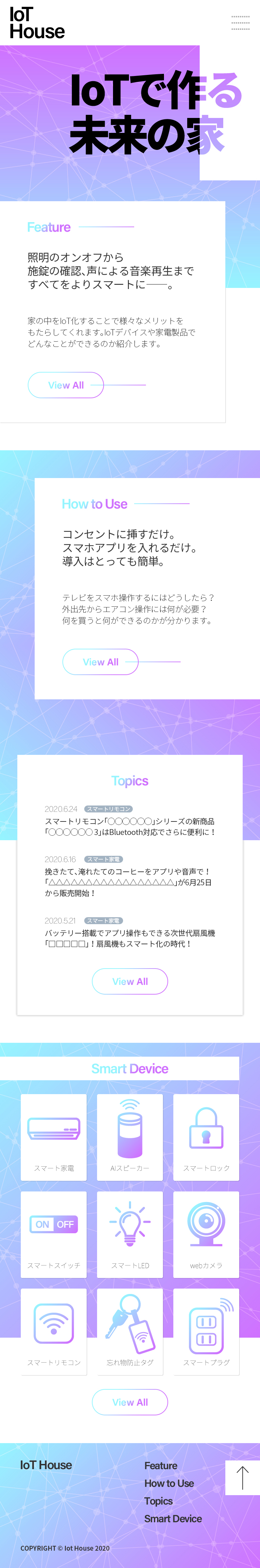 - TOPには、IoTに関するサイトであることがわかるように大きくテキストを配置した。