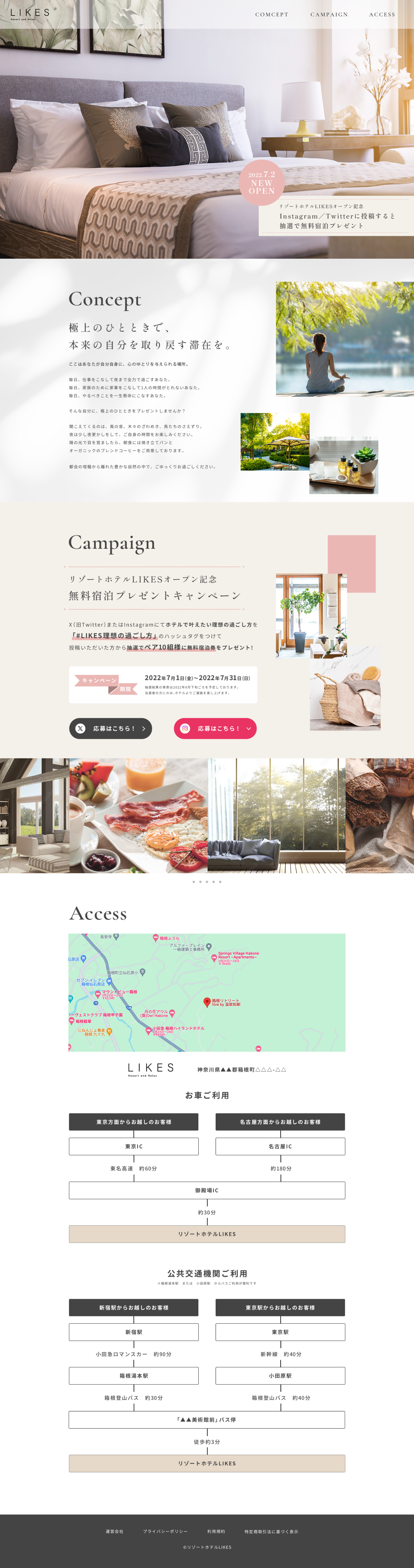 【自主制作】リゾートホテルキャンペーンサイトのLPデザインカンプ