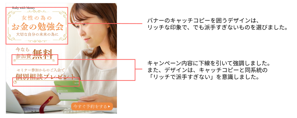 広告内容が「マネーセミナー」ということで、知的な印象の明朝体を選択しました。