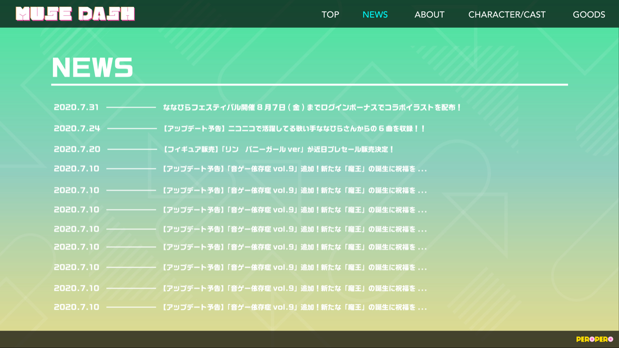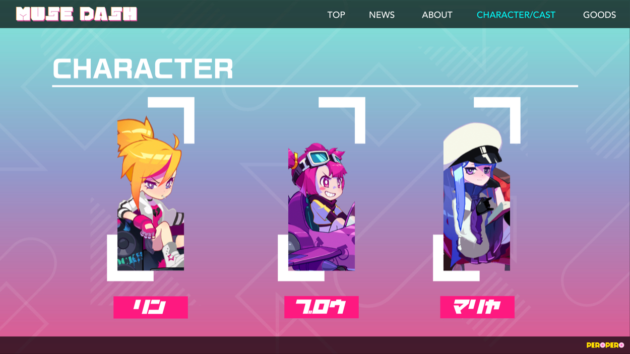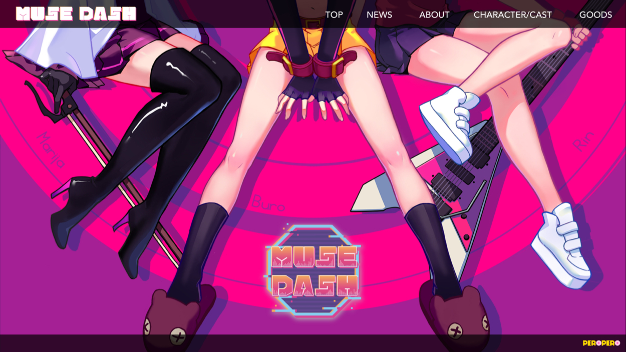 中国のインディーズメーカーが提供している音楽ゲーム「Muse Dash」の公式webサイトのデザイン案です。