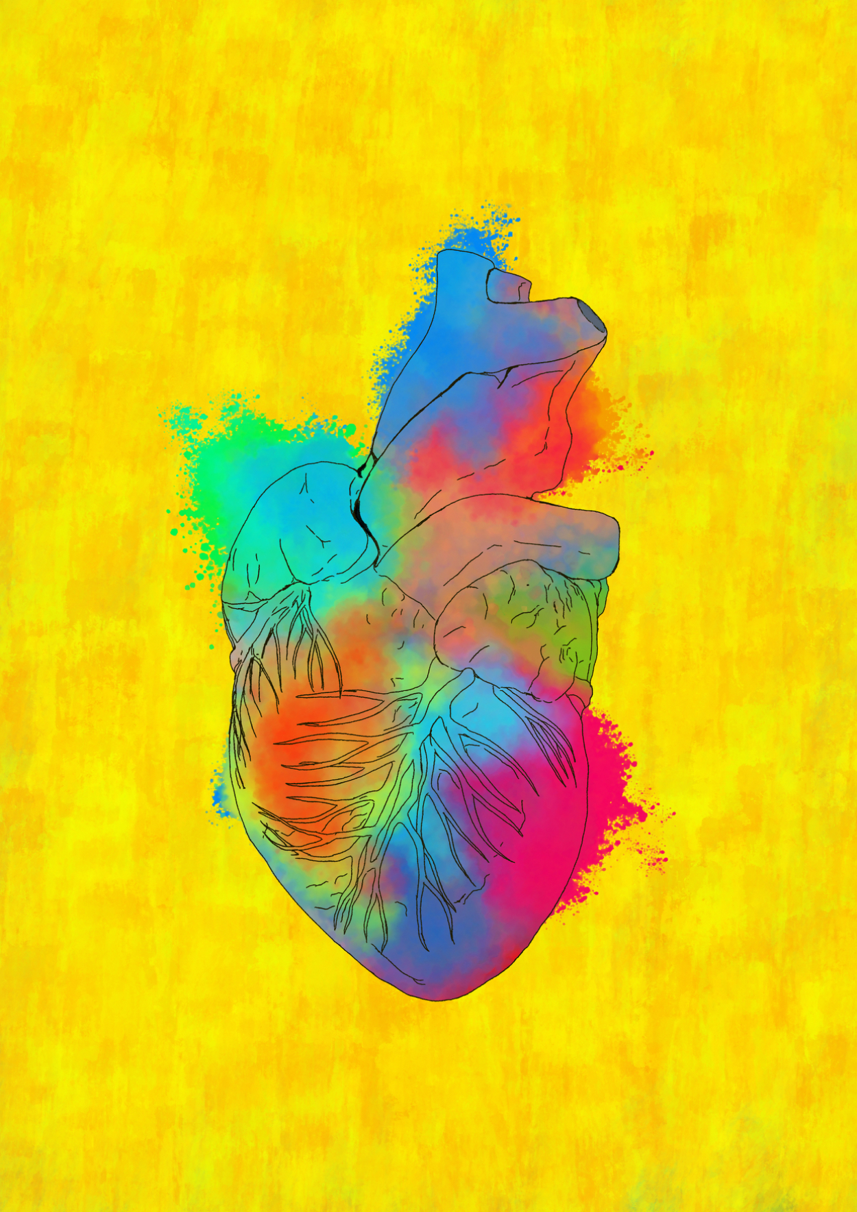 心臓模型をまず撮影し、後にトレースして色を塗りました。もう少し明るい色合いでも良かったのではと考える作品です。TシャツやCDジャケットに使うような作品をイメージして描いてみたものになります。 2020,3作成。