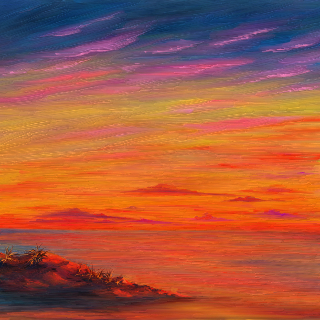 まず大まかにphotoshopで制作し、細部をFrescoで描き込みました。自分自身で撮影した島根での夕暮れの海や宍道湖を参考にしています。。2020,3作成。