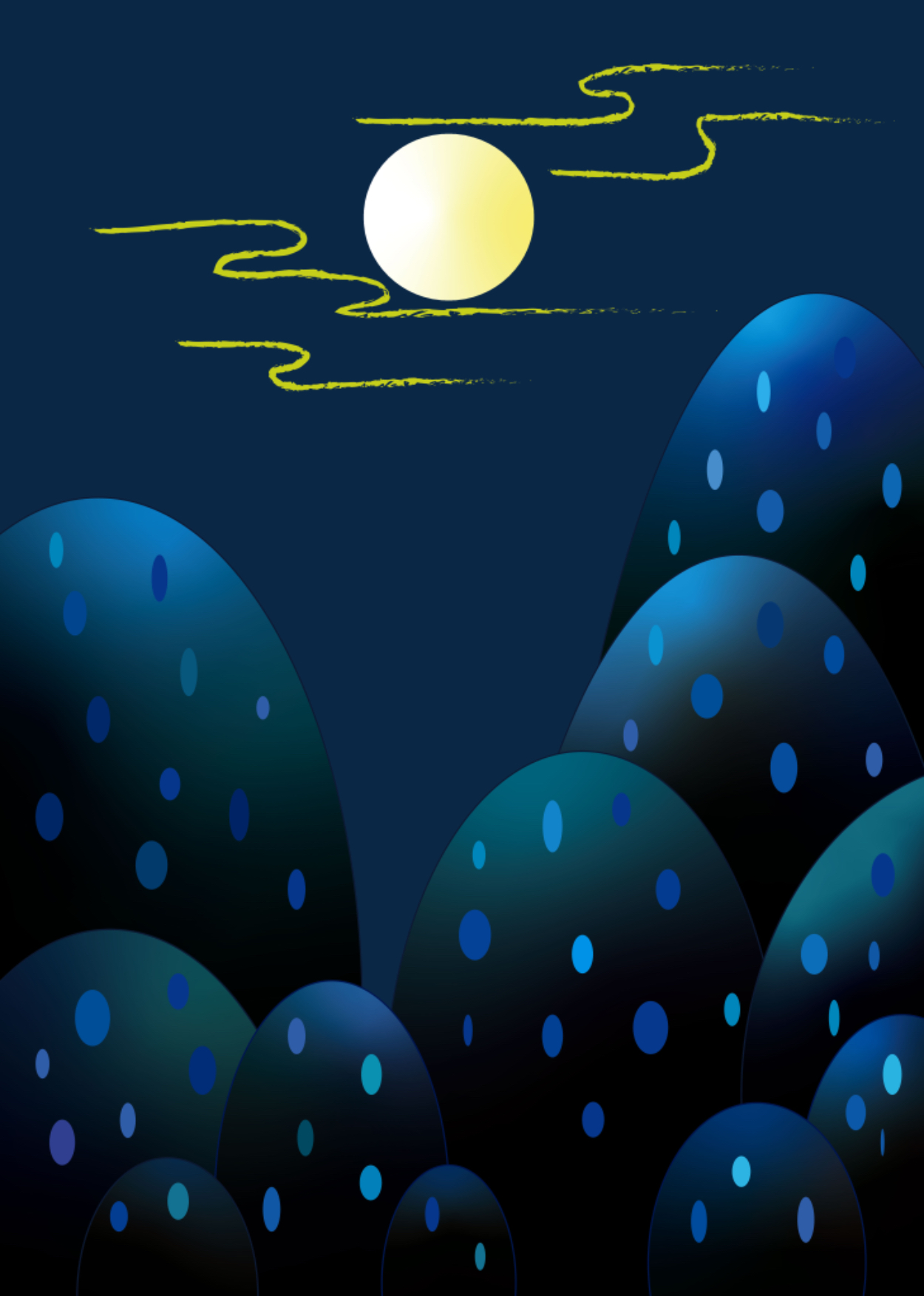 月や山などの形やグラデーションの練習を目的として制作しました。PCの状態が少しばかり古いこともありPCでの作品はこの一点のみとなります。2020,2作成。