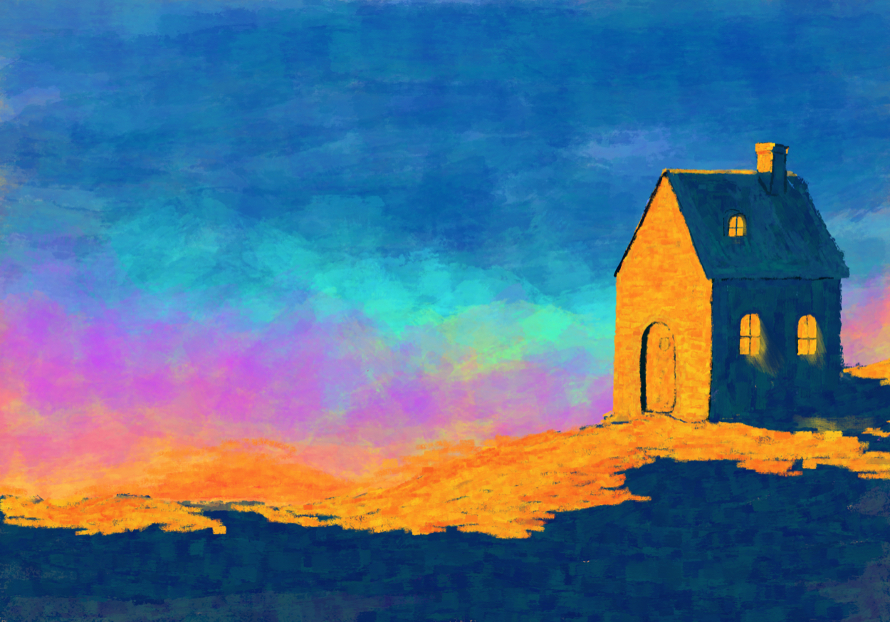 色使いを練習することを目的として作品を制作しました。夕暮れの風景が好みでより美しく夕暮れが表現できないかと日々、模索しています。