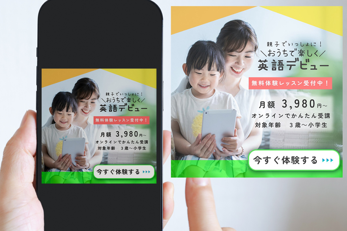#バナーデザイン #Webデザイン #ファミリー向け広告 #SNSバナー #デザイン実績 #オンライン英会話 #ポートフォリオ