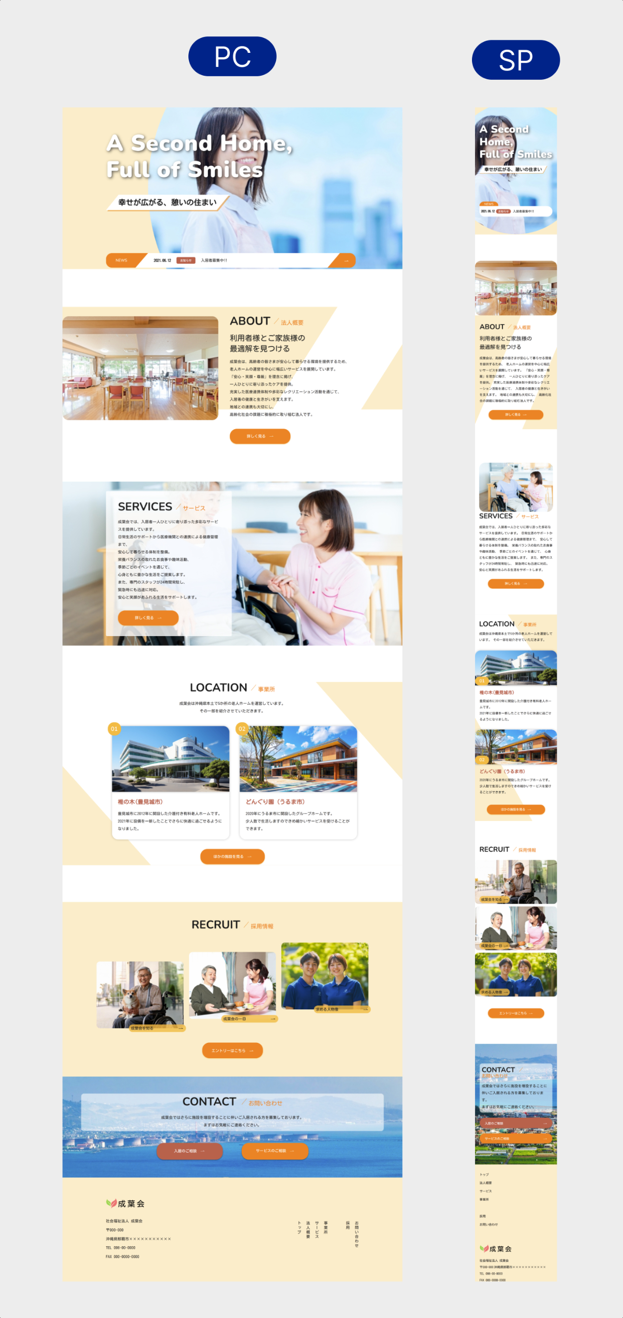 - 老人ホームを運営する社会福祉法人のHPなので暖色を使用しました