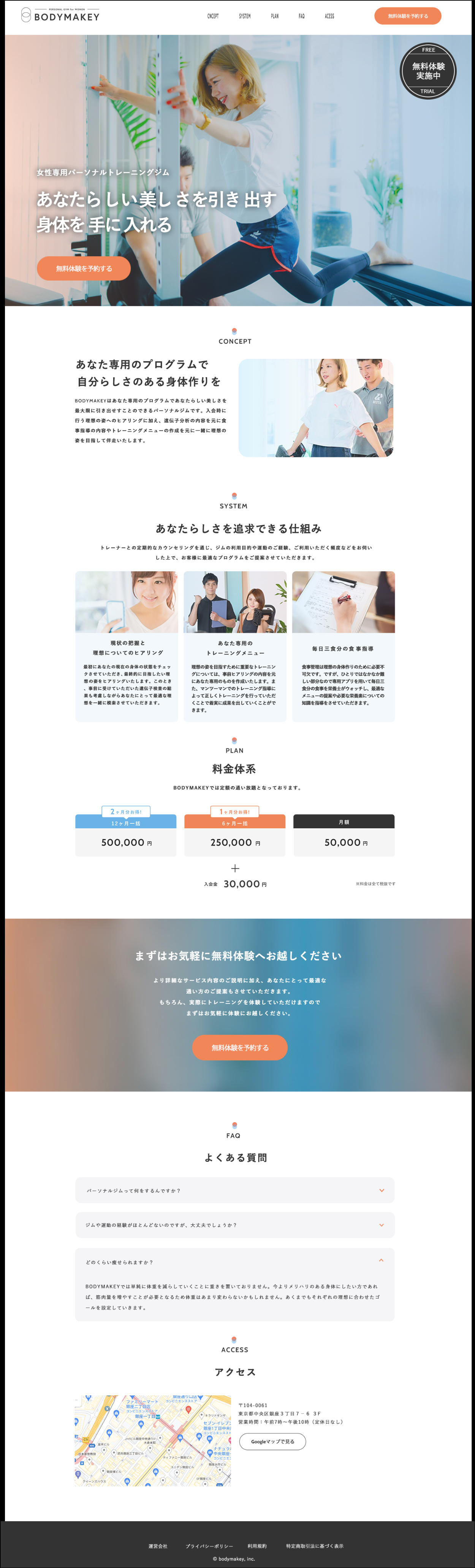 短期で理想を求めて終わりではなく長期的に伴走してくれるような存在がほしい人に向けたトレーニングジムの周知・申し込みページへの誘導