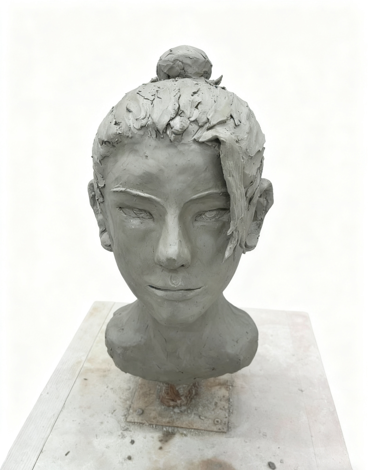 自由に発想を膨らませて制作した頭部彫刻で、『呪術廻戦』の登場人物・夏油傑を表現した作品です。