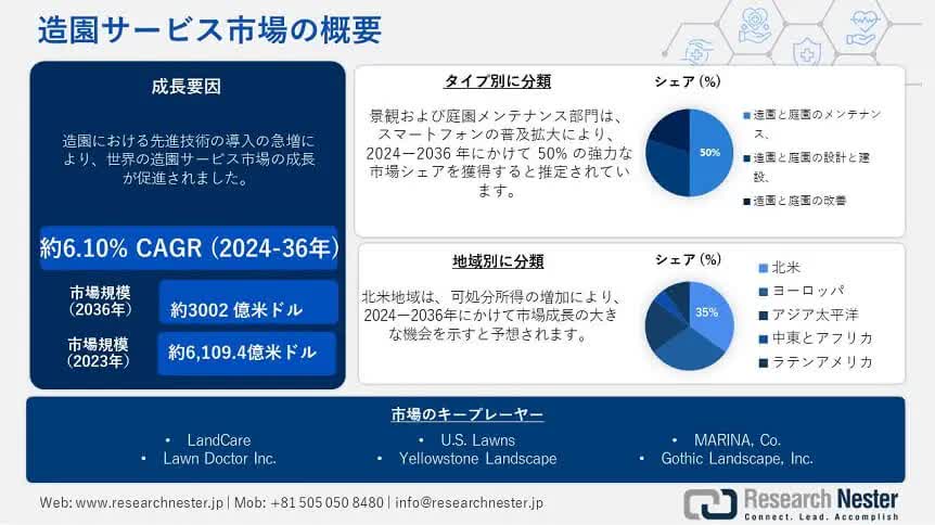 造園サービス市場: 主要ベンダー、トレンド、分析、セグメンテーション、2024~2036年までの予測