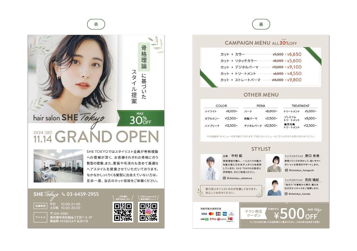 【フライヤー制作】ヘアーサロン SHE Tokyo