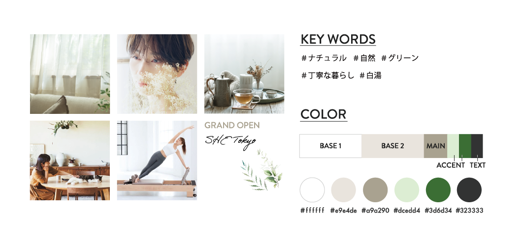 → ナチュラルで丁寧な施術や誠実な接客を連想させてくれる色としてグリーンにしました。