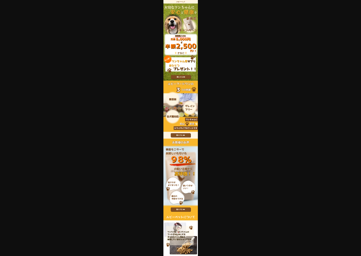商品がワンちゃんのドックフードなので、ところどころに足跡マークを入れたのもポイントです。