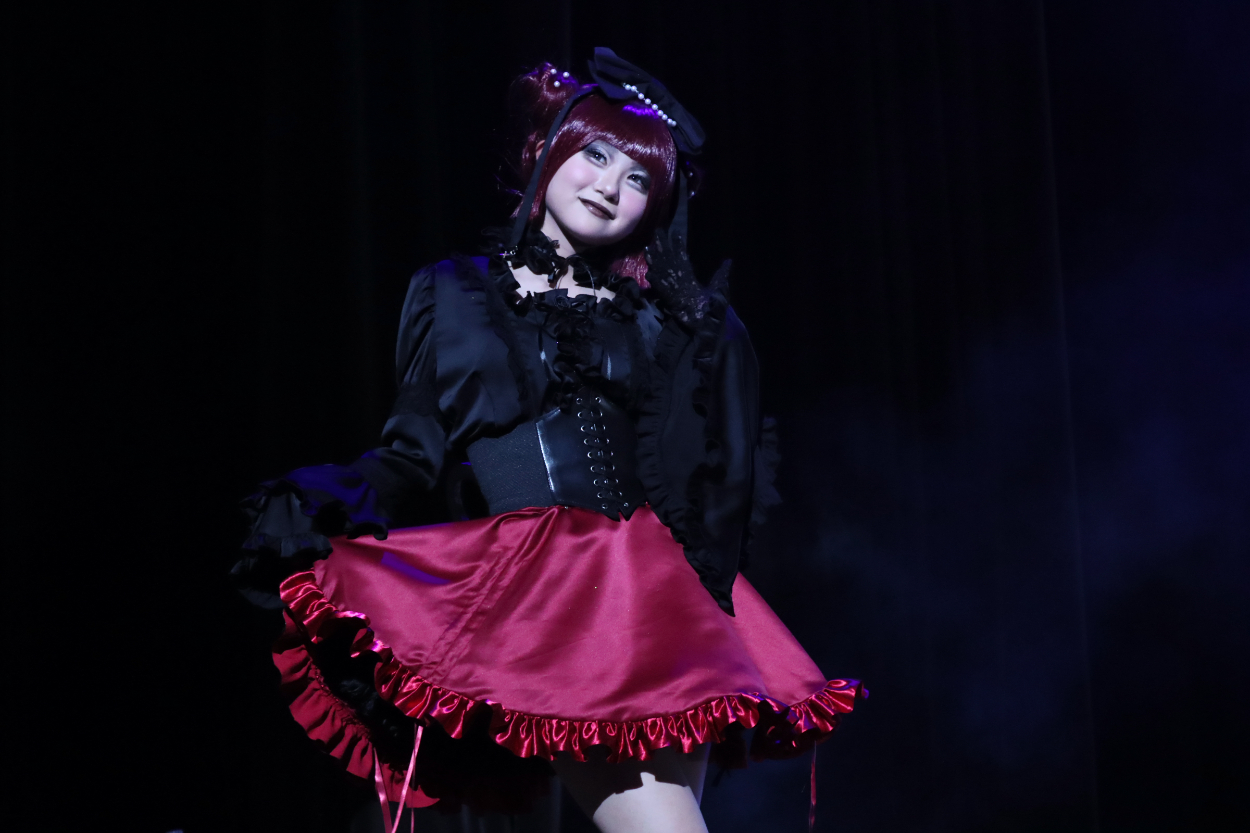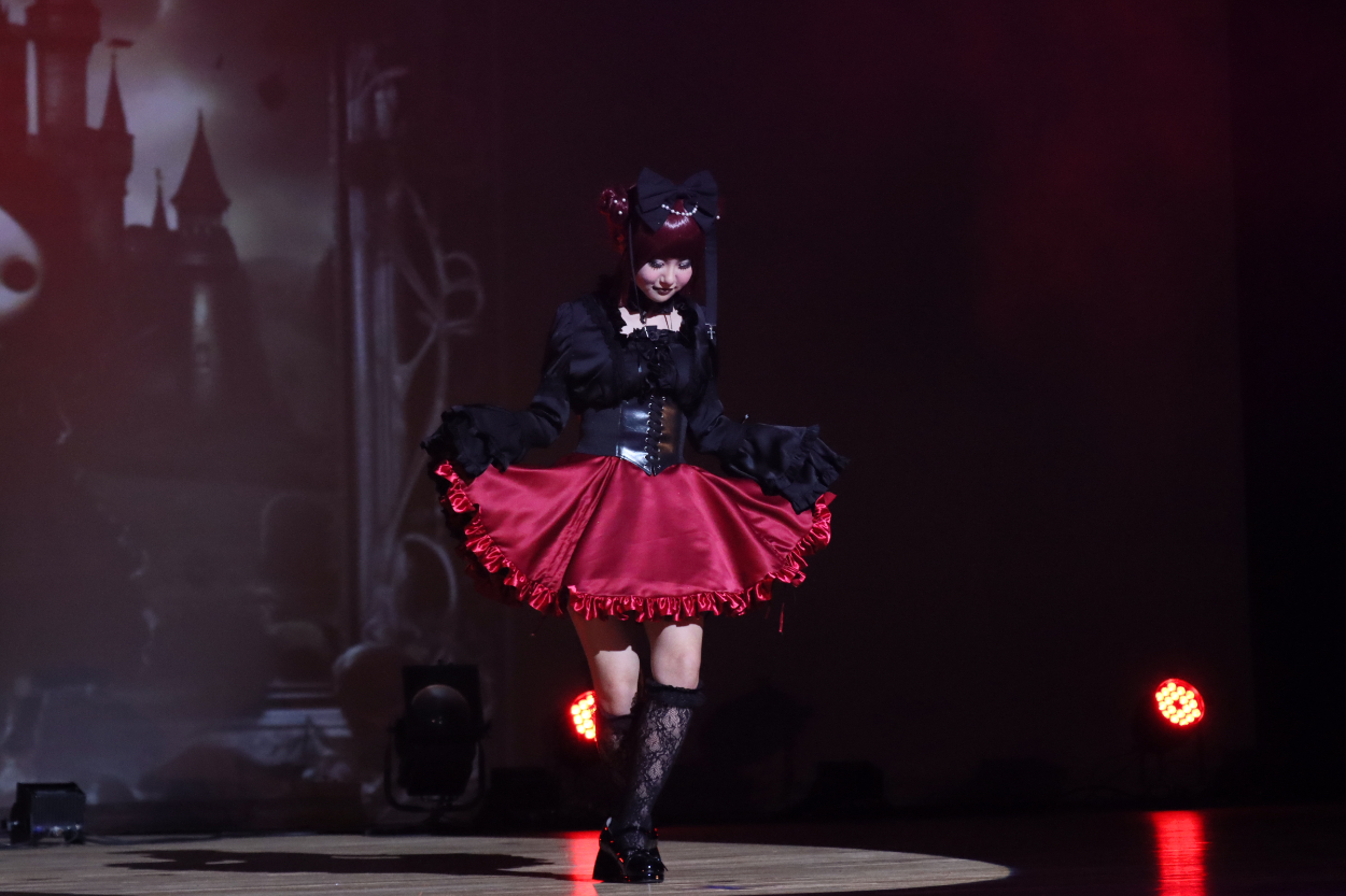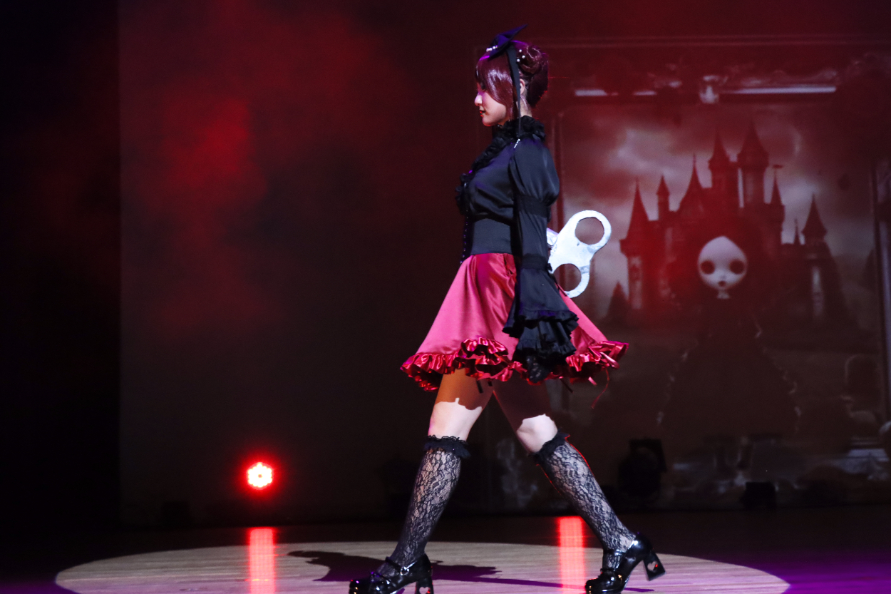 メイク:お人形さん感×ゴシックでダークなイメージが出るよう黒やシルバーなどのアイシャドウを使用しました。チークをピンクにする事によりお人形さんみが出たと思います。