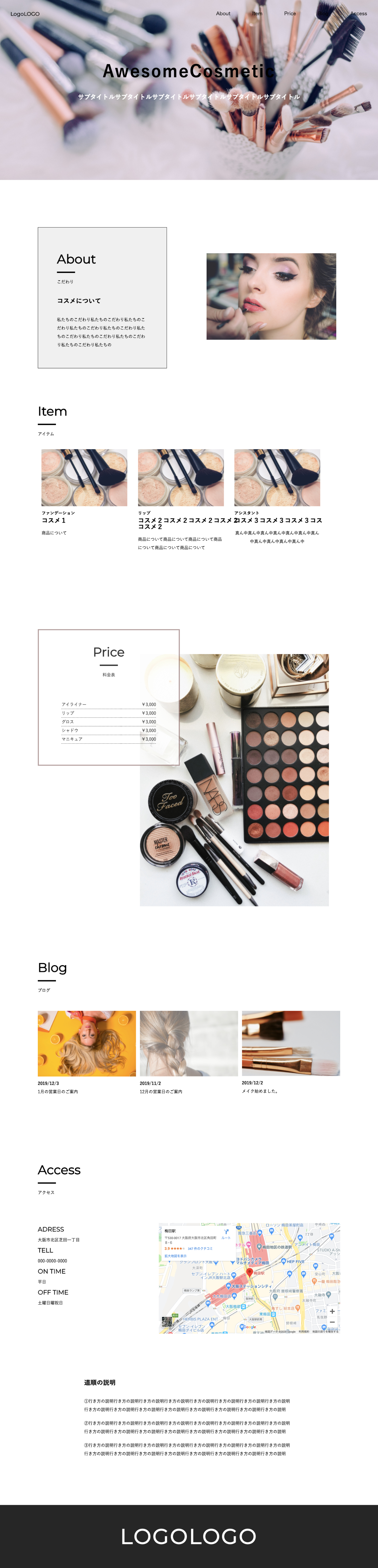 LP:コスメサイト 山崎秀直 大学生 2019/6 作成レスポンシブ実装済み使用言語:HTML/CSS/SASS/JavaScript/JQueryJavaScriptでサイトのメニューを滑らかに移動させたり、Drower.jsでスマートフォン表示の際に表示させるなどユーザーが使いやすいように意識しながらコーディングを行いました。さらにサイトの管理を簡易化することを目的とすべく、SASSの変数を用い簡易化を測りました。サイトの詳細 WEBSITE