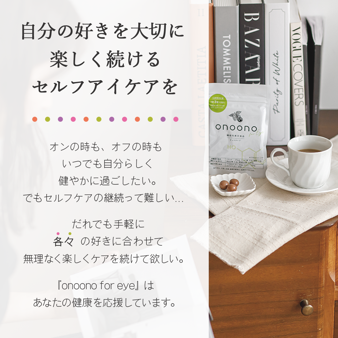 ・『onoono for eye』はただ栄養を摂るだけではなく、その過程を楽しむことを大切にしているサプリメント