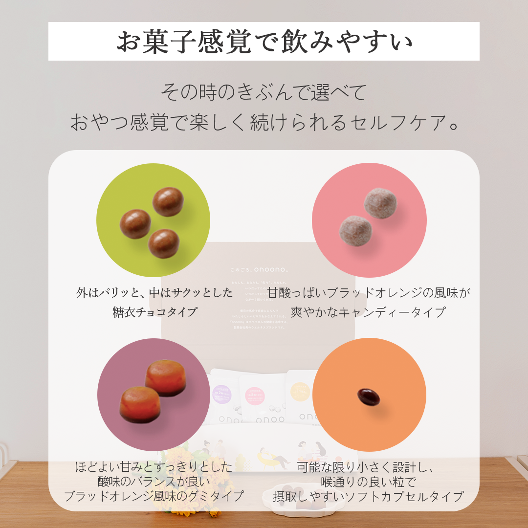 ・「オンもオフも、わたしになじむサプリ」